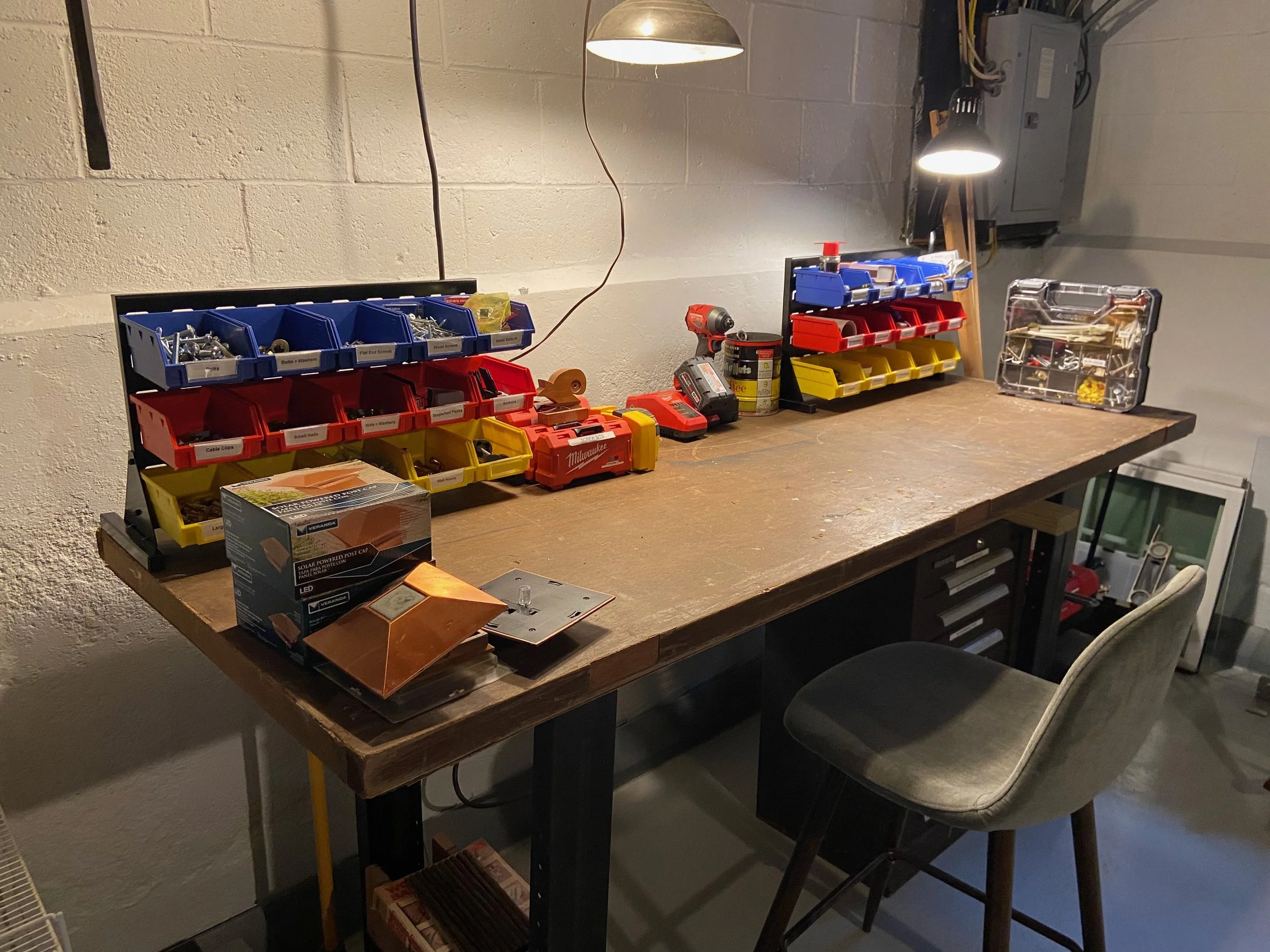 Projects, tools, materials, and lots and lots of screws, nuts, and unidentified metal objects accumulate on a work bench, which makes it unlikely the next project will get done. Purging, sorting, and labelling created a bench ready to tackle the ‘Honey Do’ list.